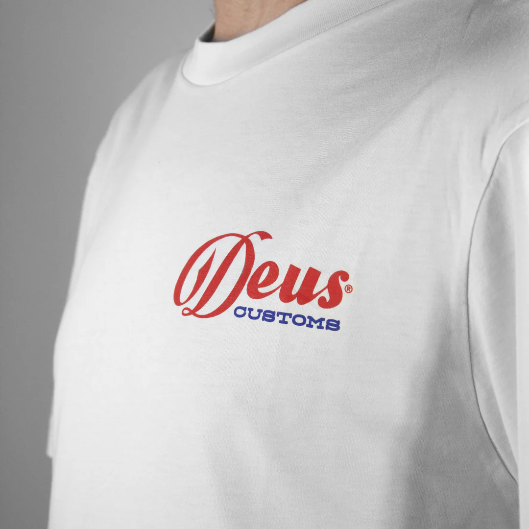 Unleash your inner road warrior with the Deus Time Taker T-shirt. Bold, minimalist, and dripping with personality, this tee is for the true motorcycle aficionado. The striking red Deus Customs logo on the front pays homage to the global motorbike culture, while the back proudly showcases Deus Custom Motorcycles with a distinct nod to Seoul's iconic style. Crafted in crisp white and designed for comfort, this shirt doesn’t just represent the moto lifestyle; it defines it.